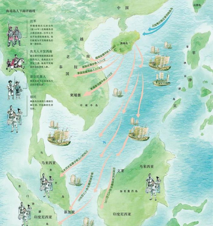 海南人的向外迁徙在当时的广东潮汕地区、雷州半岛都留下了重要的语言印记。作为当时尚未有大规模开发的区域,海南岛的东部沿岸平原一带承载了大量来自福建的移民,从而在一个时间段内形成了大批的福建人移民聚落。